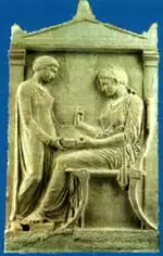 - стела Гегесо – эта стела является самой знаменитой из всех обнаруженных стел Греции. Находка датируется пятым веком до нашей эры. Этот памятник обнаружили на территории Керамики. Сейчас, там установлена копия стелы. На стеле изображена женщина, которая сидя в кресле, занимается тем, что перебирает свои украшения. Ее имя - Гегесо Проксено. Именно это имя было начертано вверху стелы. Исследователи высказали предположение, что сама стела имела синий фон, а украшения, которые мы видим в руках у Гегесо, были выполнены в золотом цвете.