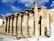 Это сооружение построил в 132г. н.э. император Адриан. Он предполагал создать место, где можно было бы в покое и тишине посидеть в размышлениях и обрести душевный покой. В плане библиотечный комплекс похож на Римскую Агору. В нем располагался атриум, вокруг него были возведены 4 аркады, которые выходили на квадратный двор с перистилем. Западная стена была сложена из пентелийского мрамора, остальные – из известняка.