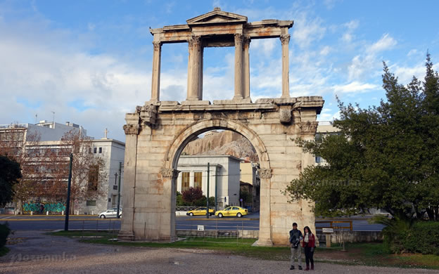 Арка Адриана – это монументальные ворота, находящиеся в самом центре греческой столицы. Этот древний памятник своим внешним оформлением чем-то похож на римскую Триумфальную арку. Ее построили в начале второго столетия нашей эры на дороге, ведшей от центра Афин до восточной части города, где находился знаменитый храм Зевса Олимпийского. А посвятили это строение римскому императору Адриану.